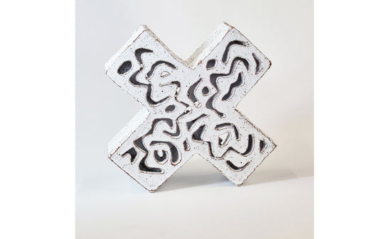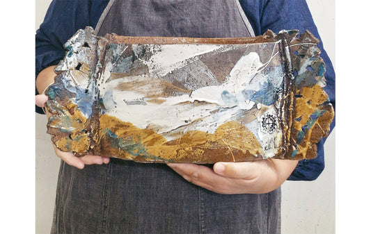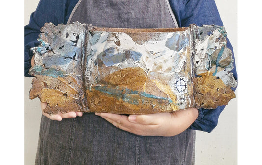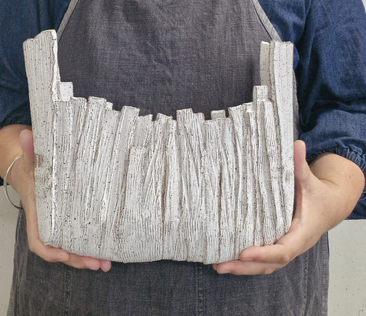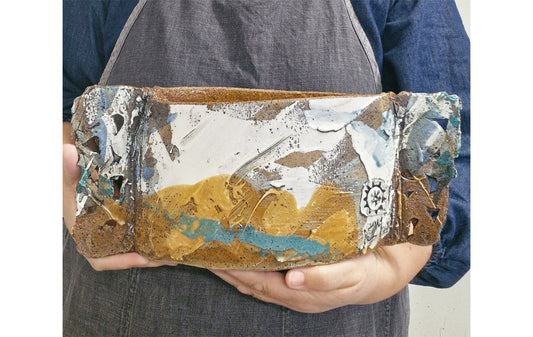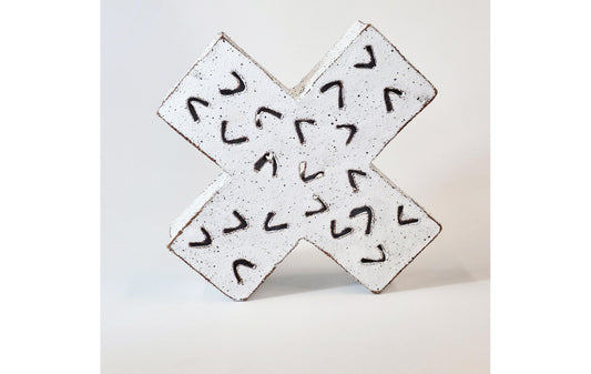 Jane McCulla presents three interconnected forms in her work. Her nautical-themed pieces reference worn jetties, the passage of time, and rhythms of arrival and departure. A cartographic element depicts specific places and navigation — where “X” marks the destination. Two-sided vessels evoke weathering systems and landscape forces, reflecting the slow processes that shape both land and human experience.