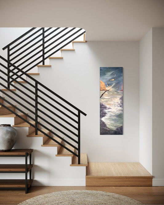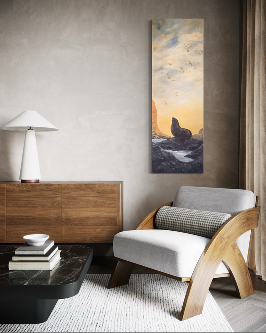 Beverley Frost paints moments inspired by places close to her heart. An old map at her bach in Wainui sparked reflections on the familiar coastline and the edges where sea meets sky. Sitting and observing the changing weather and abundant flora and fauna of the Peninsula, she translates these impressions onto paper and canvas. Her paintings capture fleeting moments often overlooked, inviting viewers to experience the subtle rhythms of this remarkable landscape.