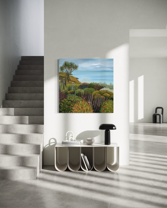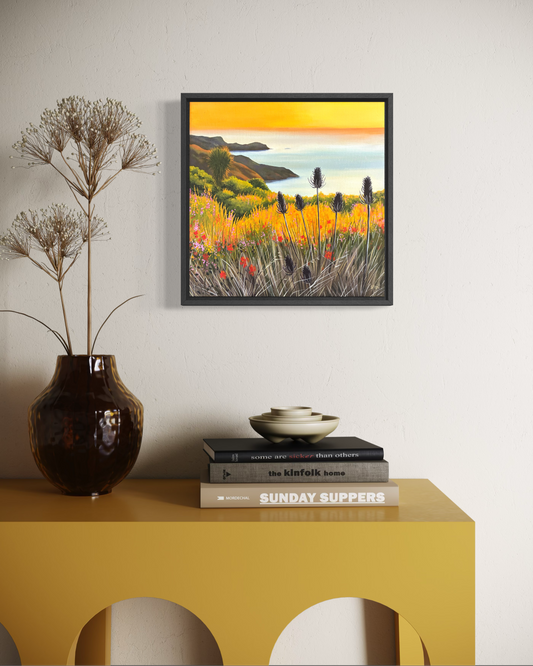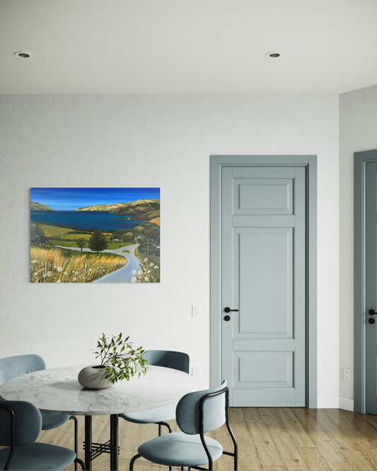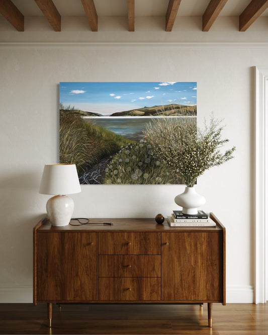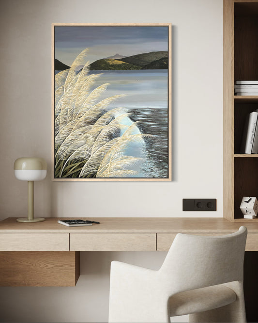 Beverley Frost paints moments inspired by places close to her heart. An old map at her bach in Wainui sparked reflections on the familiar coastline and the edges where sea meets sky. Sitting and observing the changing weather and abundant flora and fauna of the Peninsula, she translates these impressions onto paper and canvas. Her paintings capture fleeting moments often overlooked, inviting viewers to experience the subtle rhythms of this remarkable landscape.