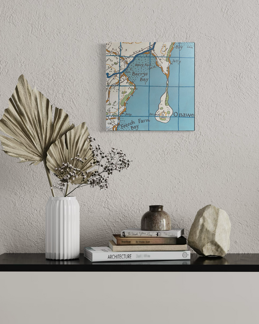 Jane McCulla presents three interconnected forms in her work. Her nautical-themed pieces reference worn jetties, the passage of time, and rhythms of arrival and departure. A cartographic element depicts specific places and navigation — where “X” marks the destination. Two-sided vessels evoke weathering systems and landscape forces, reflecting the slow processes that shape both land and human experience.