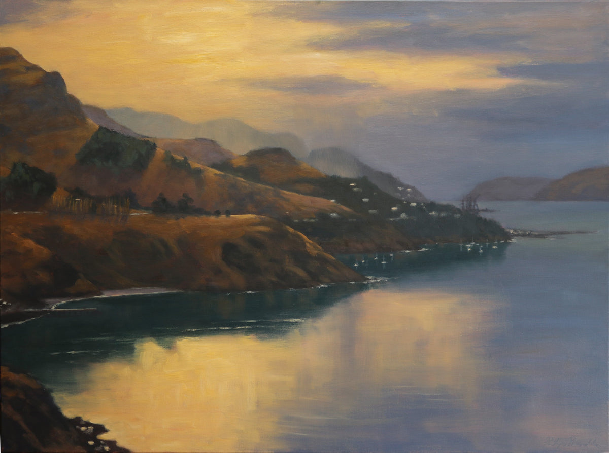 I enjoy capturing the low sun reflected on water and the resulting atmospheric conditions. Invariably these emphasise the distance in the painting pushing out the far from the near.