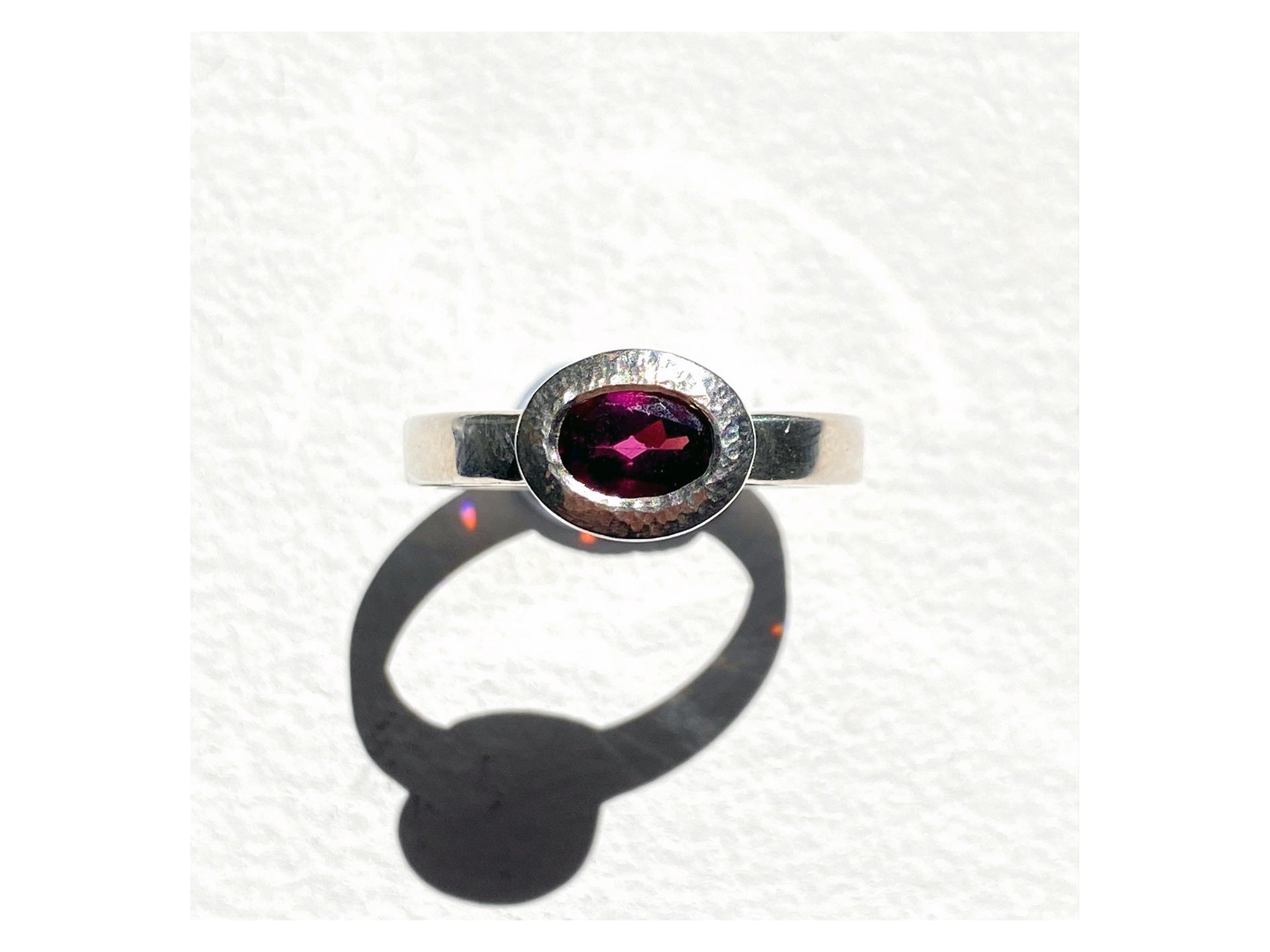 Oval Sterling Silver Bezel Ring - Garnet