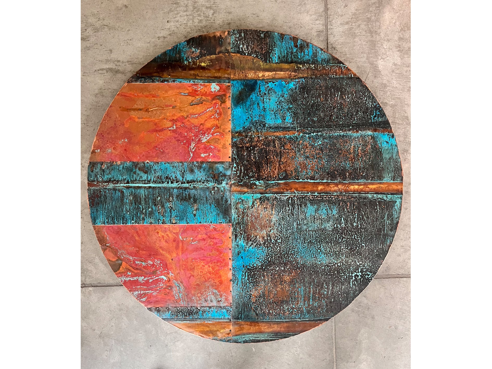 Patinaed copper on board