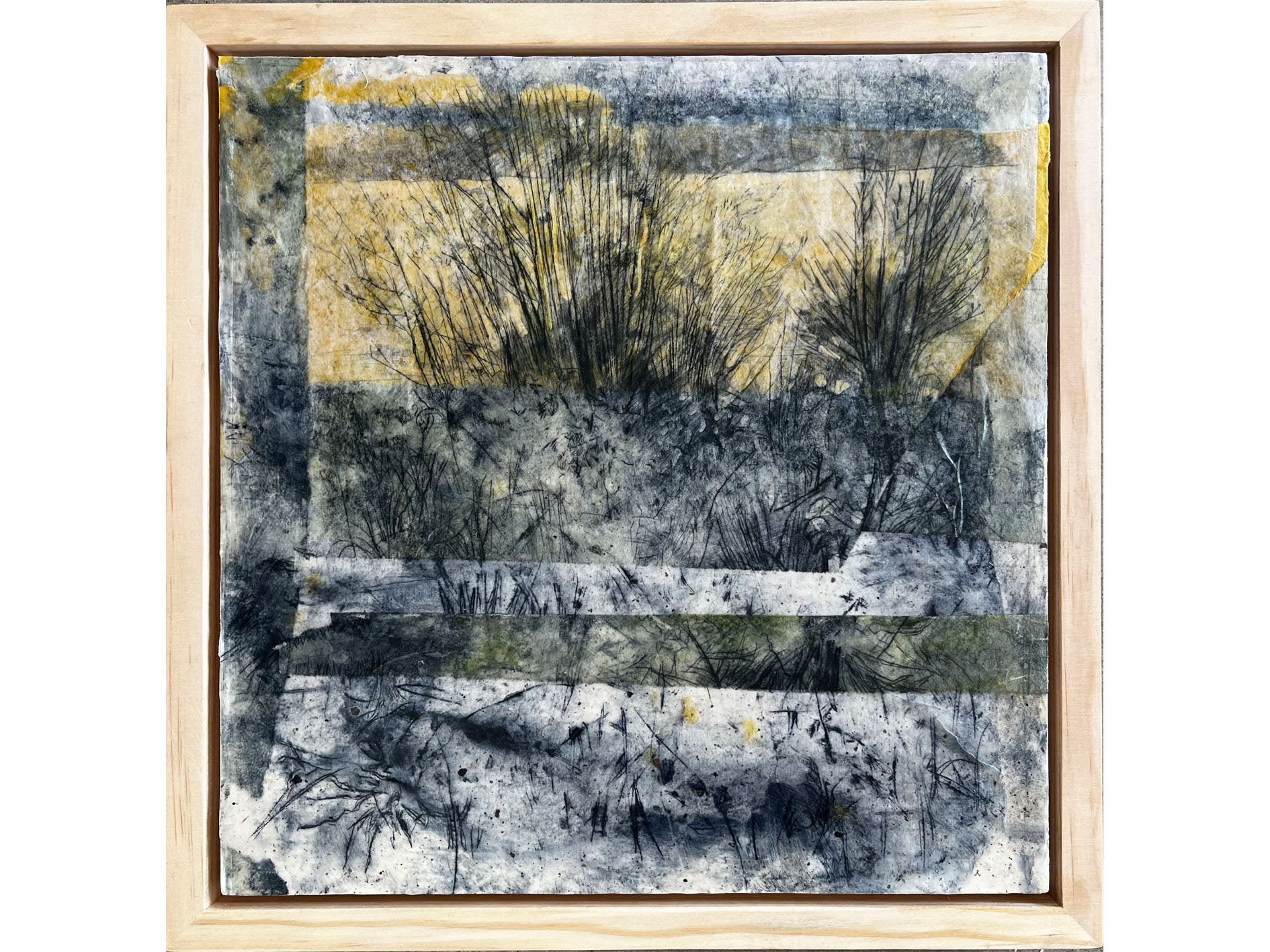Ink, wax, paper on board